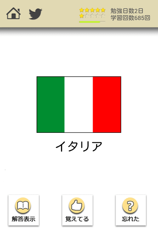 また、覚えていない国旗は何度も出題されるので、確実に記憶できます。