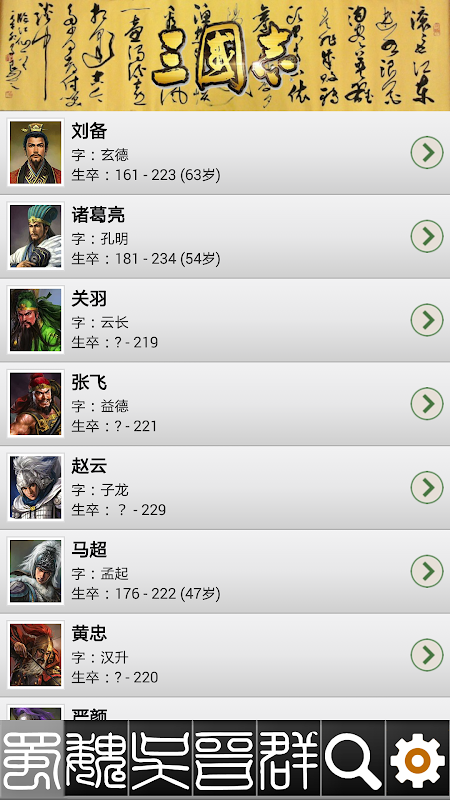 有了这软件你就能随时查询三国人物的历史背景,包括正史和野史,生卒日期,籍贯和官职等。
