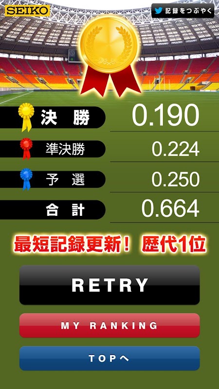 3つのステージの合計タイムによってマイRANKINGが作成されます。