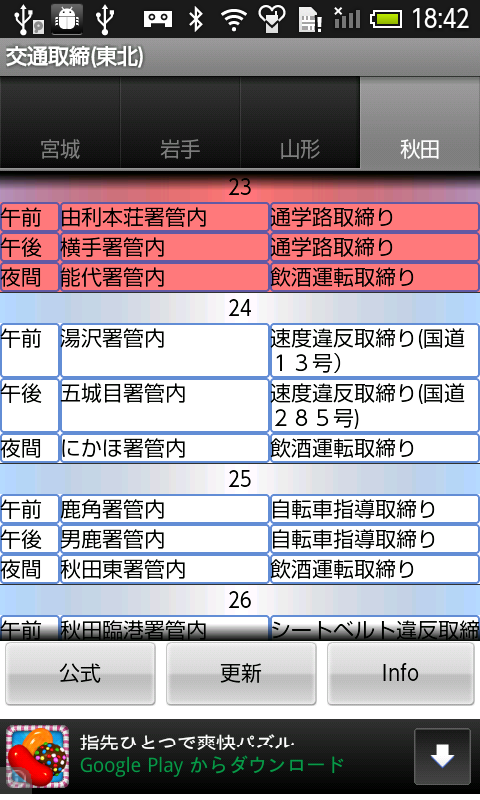 東北エリア(秋田県、岩手県、宮城県、山形県)の公開交通取締情報を確認するアプリです。