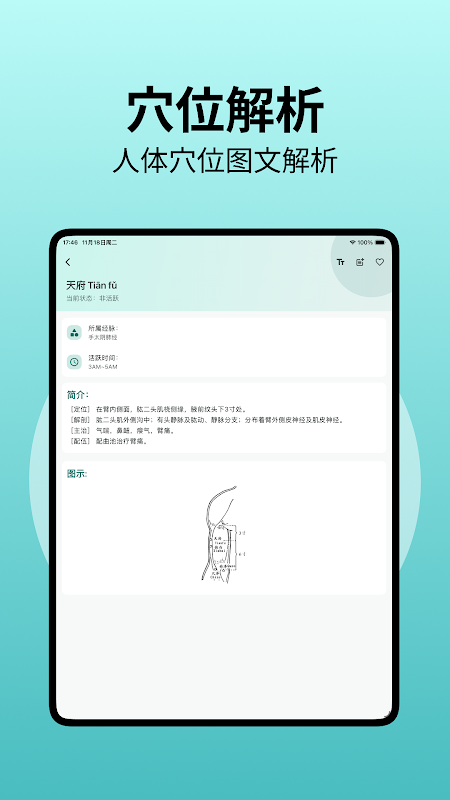 Thông qua ứng dụng này, có thể dễ dàng tìm thấy hàng trăm huyệt đạo trong cơ thể con người, đồng thời cung cấp phần giới thiệu bằng đồ họa và văn bản cho việc học tập và nghiên cứu của bạn.
