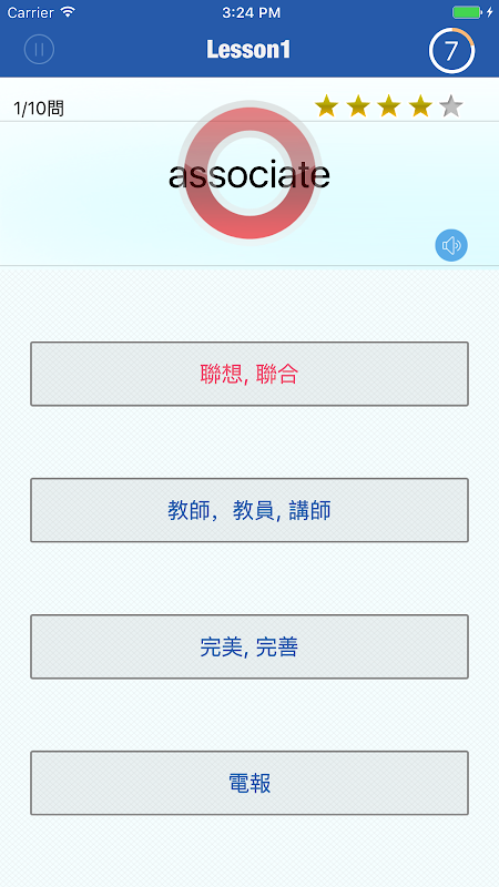 ・挑戰模式,只聽單詞發音,從8個選項中快速回答,非常刺激,讓你的心跳瞬間加速!