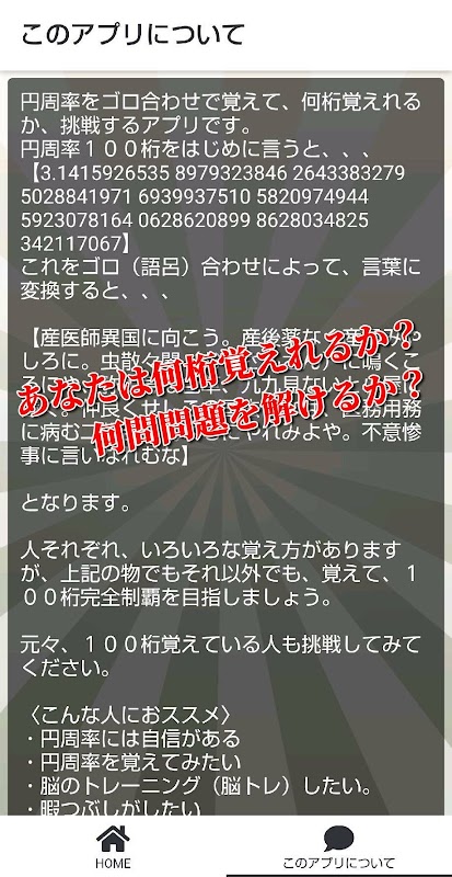 Thông tin APK 円周率 ゴロ合わせで簡単暗記アプリ。