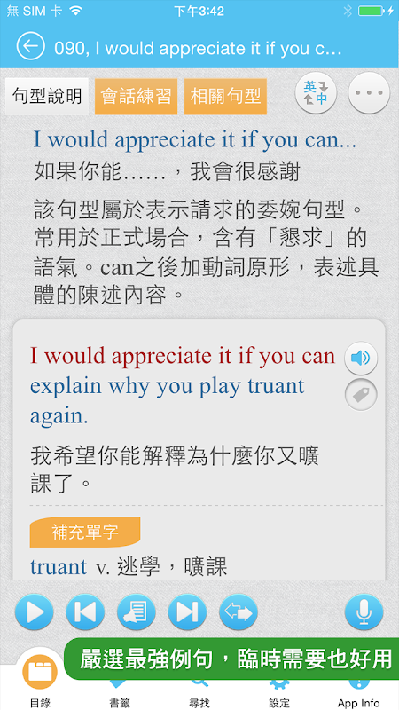Transwhiz 發行,名師蔣志榆編著優質英語會話學習 app。用最貼近老外的說法,學最實用的口語會話,開口說一點都不難。採功能情境分類,快速達到學習目標。