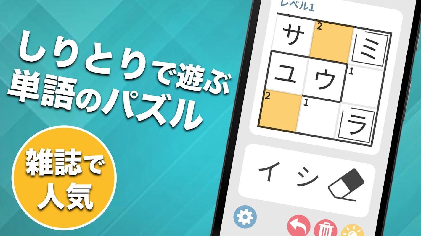 老若男女問わずサクサク遊べるしりとりナンバークロスワードパズルゲームです。スキマ時間にプレイして頭の体操をしましょう。