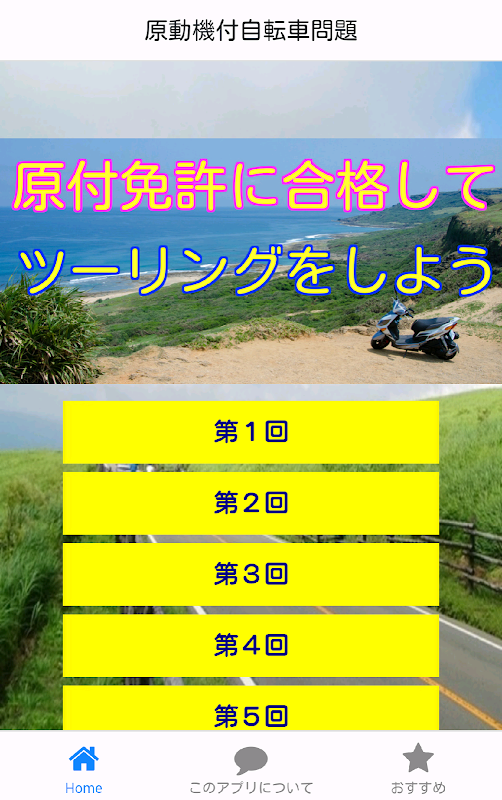 原付免許の問題集です。簡単な問題も難しい問題も網羅してます。このアプリを活用して試験に1回で合格してください。