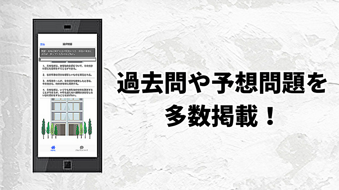 管理業務主任者試験(通称:管業)の過去問や予想問題を〇✕や4択で出題。