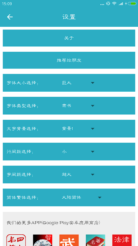 [温馨提示]: 支持兰亭,宋体,楷体,隶书与系统默认五种字体,支持五种字体尺寸,支持五种文字显示背景,使得视觉体验很好, 支持翻页阅读方式。