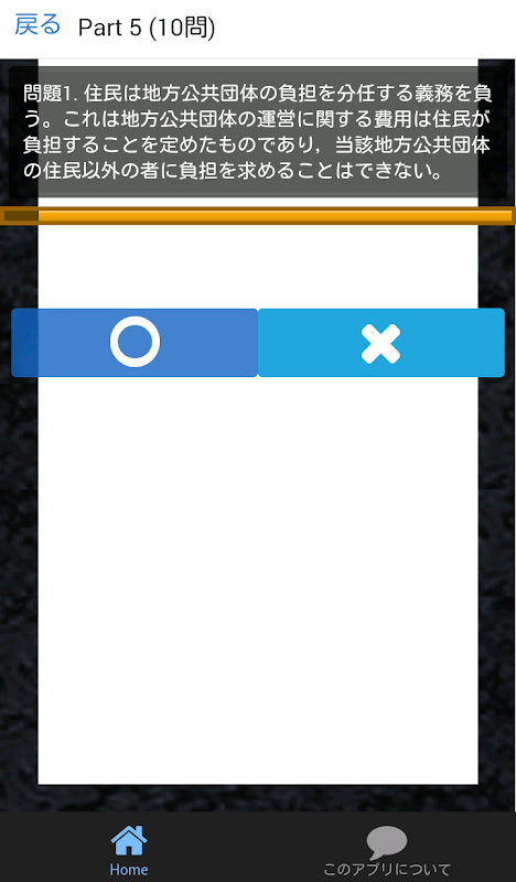 地方自治法、地方公務員法、行政法、憲法いずれも○×式の正誤2択問題。