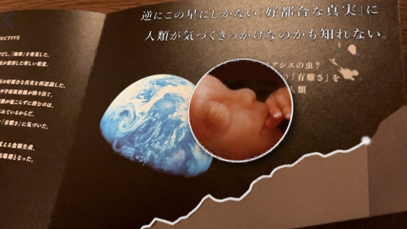 誌面には1月から12月までの12の見開きに、地球と人類の歴史が多次元的な時間のランドスケープとして描かれています。(それぞれ50億年、5億年、5000万年・・とゼロを一つずつ減らした単位で、最後は5年後、50年後に至ります)。ただ壮大なスケールの内容は、文章や写真だけではイメージしにくい事柄も多くあります。