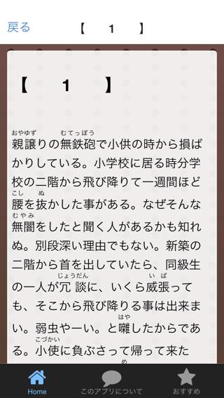夏目漱石の著書、『坊っちゃん』が読める、無料アプリです。