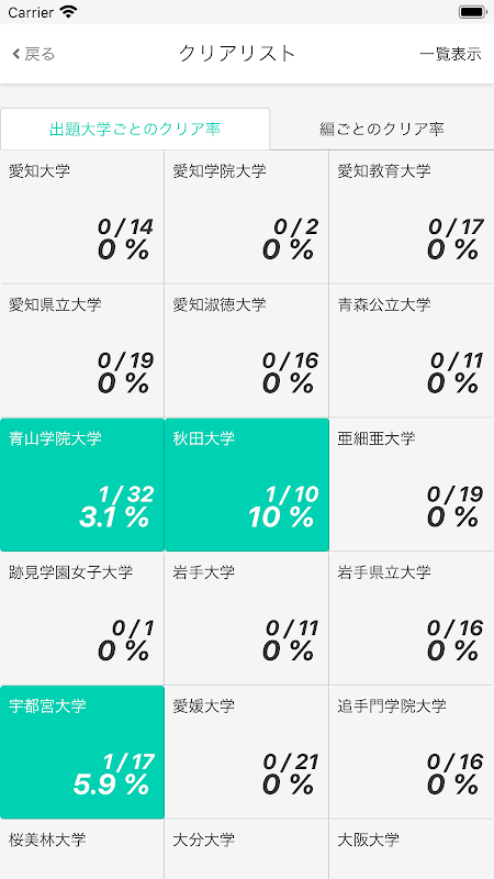 おぼえた問題の数、すべての問題をおぼえた大学の数をグラフで表示。