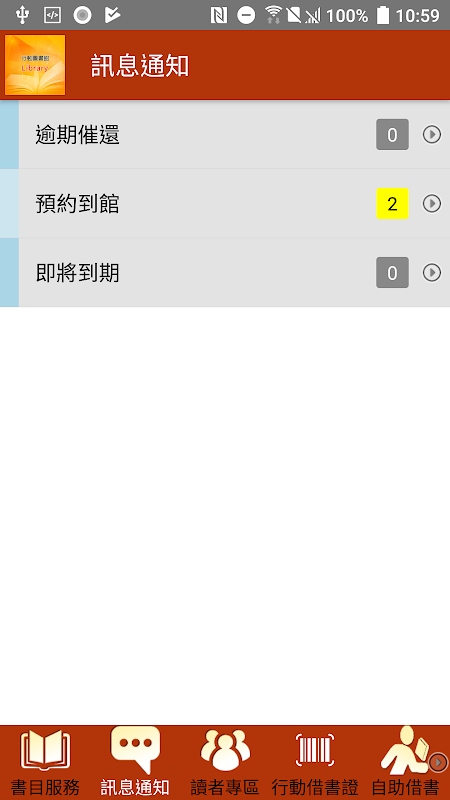行動圖書館,提供讀者輕鬆快速地取得圖書館的相關資訊。包括館藏查詢、主題書展、圖書館訊息通知等。登入帳號及密碼驗證後,還可享有個人化服務。快來體驗喲!