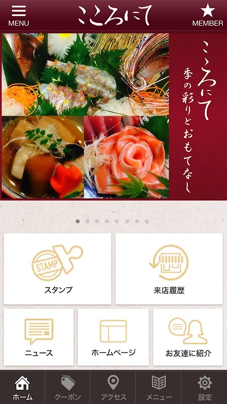 このアプリでは、こころにての色々な情報やアプリユーザー限定のお得なサービスが手に入ります!
