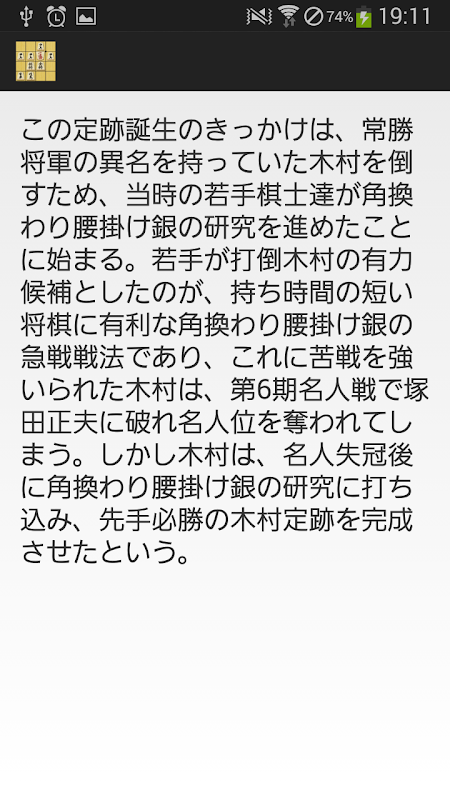 将棋の戦法のひとつ、角換わりの定跡をまとめたアプリです。