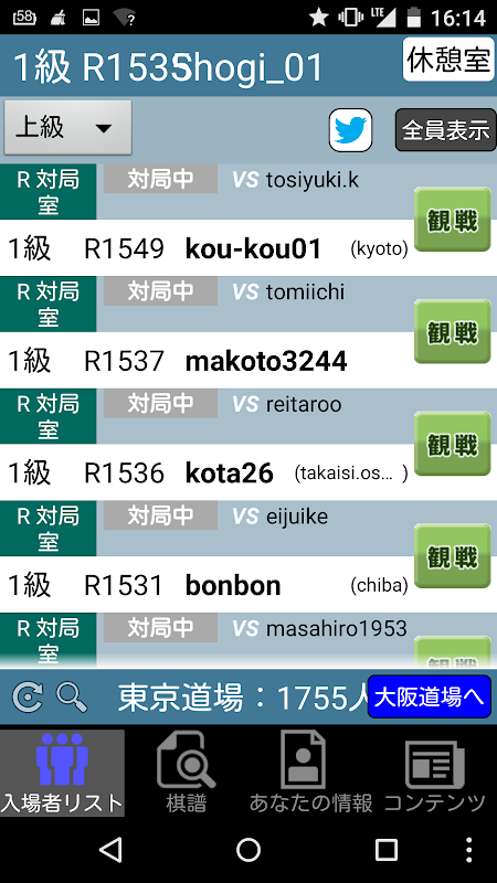 ・ログイン中、および対局中/観戦中の将棋(局面)をTwitterでつぶやいて棋友にお知らせ。