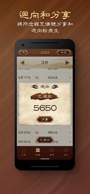 - Bạn có thể đặt mục tiêu hàng ngày và tự động ghi lại số lần niệm Phật mà bạn niệm mỗi ngày.