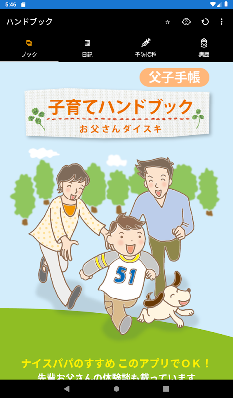 Ứng dụng này có thể được sử dụng như một hướng dẫn cho các ông bố khi nuôi dạy con cái, đồng thời có chức năng nhật ký / album cho phép bạn ghi lại quá trình trưởng thành và ký ức của con mình và đăng ký ảnh. Ngoài ra, bạn có thể đăng ký lịch tiêm chủng, ngày thực hiện, tiền sử bệnh,… sẽ giúp bảo vệ những đứa con quan trọng của bạn.