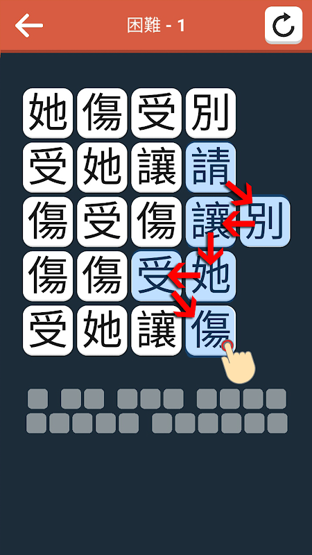 這是一款新穎的益智文字遊戲。您需要在重複的漢字中尋找和拼字。