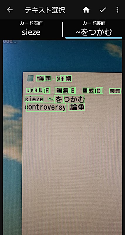 この機能は、カメラで暗記したい文字を映して登録すると、カードをめくって見たり、書き取りをすることができます。