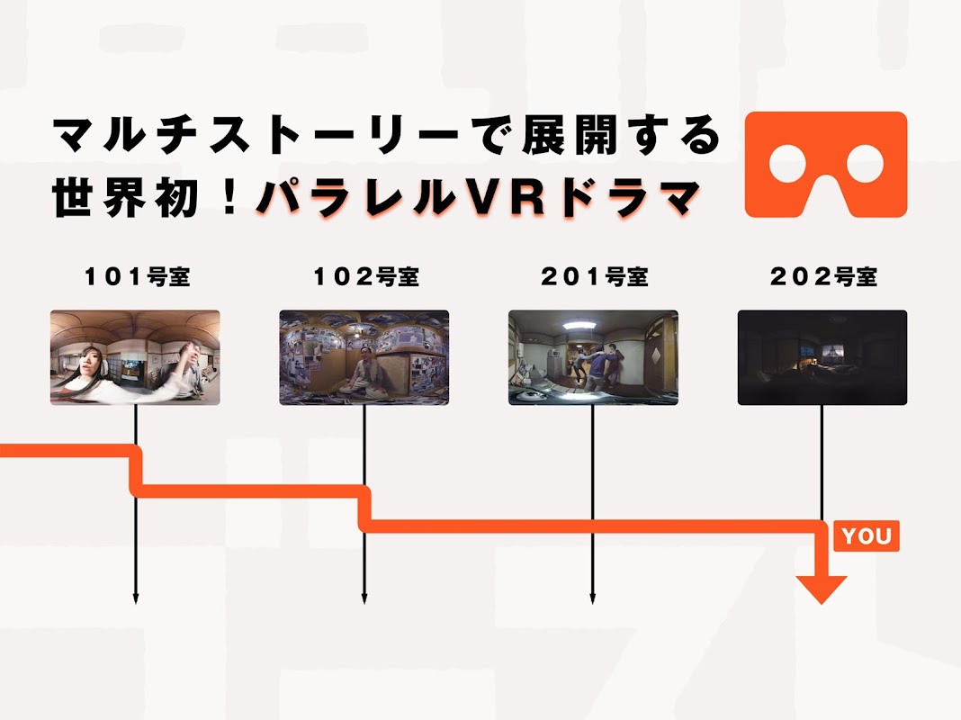 ストーリーは、古いアパートの一室で起こった密室殺人事件。犯人はこのアパートの中にいる! それぞれの登場人物の部屋を移動して犯人を探し回る、マルチストーリー本格VRドラマ。犯人は、360度バーチャルリアリティの迷宮に逃げ込んだ! 果たして誰なのか? 犯人がわかっても決して人には言わないでください (SNSも含む)!