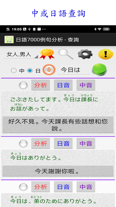 Bản sửa đổi mới: Mỗi câu ví dụ tiếng Nhật đều được phân tích, bạn có thể thêm câu yêu thích, bạn có thể truy vấn bằng tiếng Trung và tiếng Nhật, và bạn có thể phát âm chúng bằng cả tiếng Trung và tiếng Nhật.