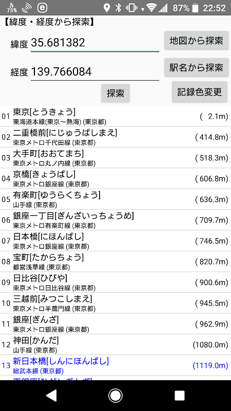 Nó hiển thị các trạm và môi trường xung quanh nhà ga gần nhất từ vị trí hiện tại. Đi và sẽ được công bố trong thông báo khi nhà ga gần nhất là thay đổi.
