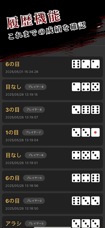 Ứng dụng Chinchiro nghiêm túc có ``chế độ chiến đấu'' trong đó bạn chơi với CPU và ``chế độ tự do'' nơi bạn có thể tung xúc xắc một cách tự do.
