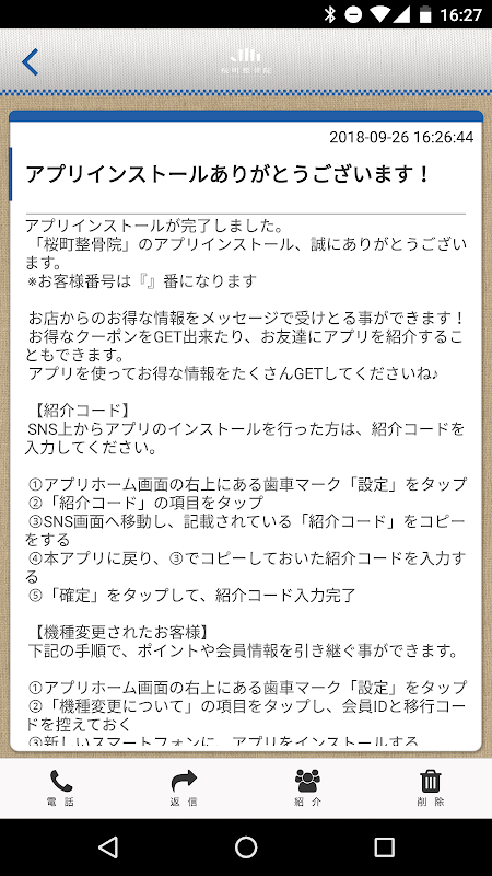 桜町整骨院のアプリをSNSを通じてお友達に紹介する事ができます。