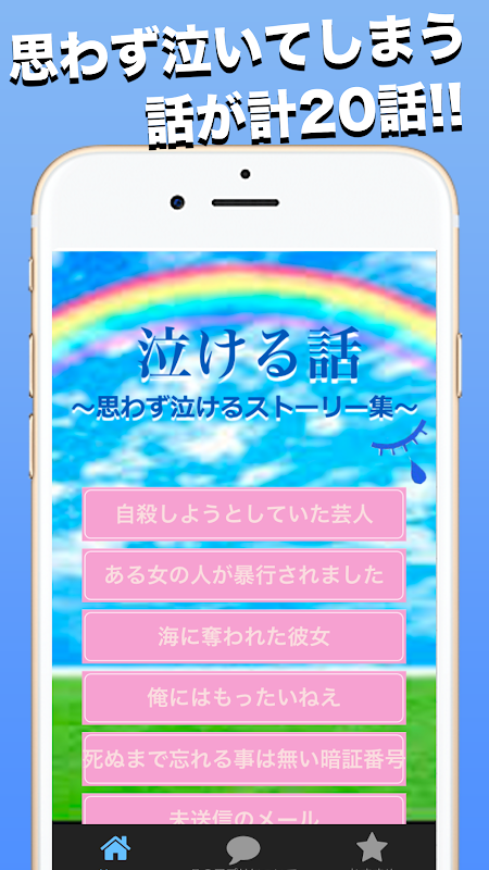 泣ける話をアプリ内に含めています。