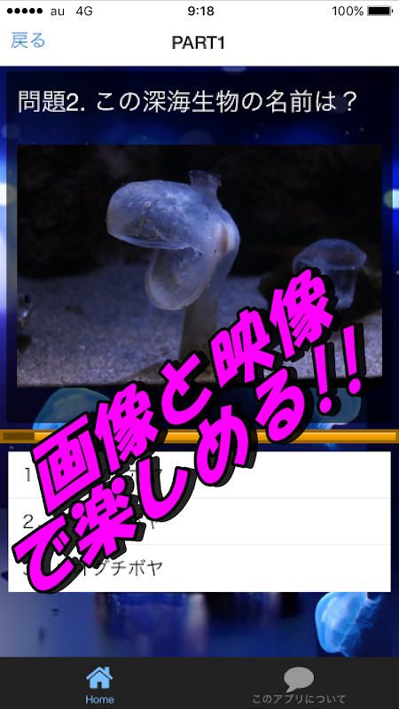 深海生物のクイズアプリです。