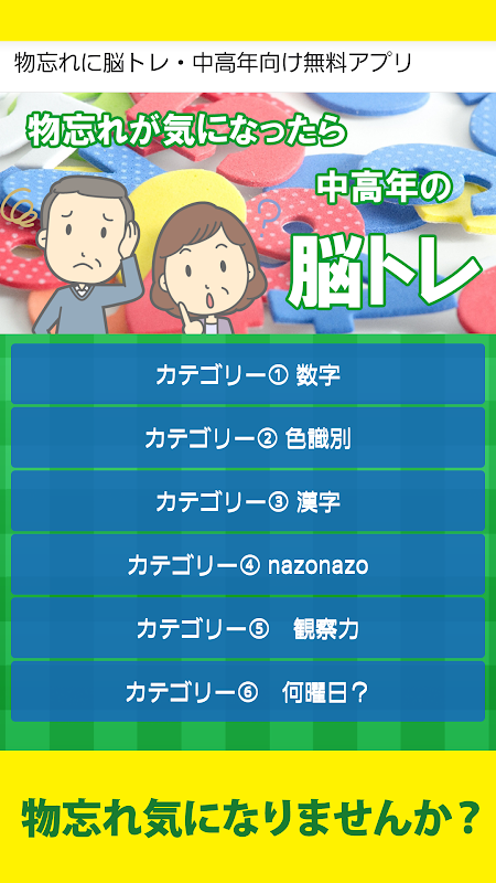 中高年の為の脳トレアプリは、気軽に楽しみながら脳の働きに刺激を与えるアプリです。