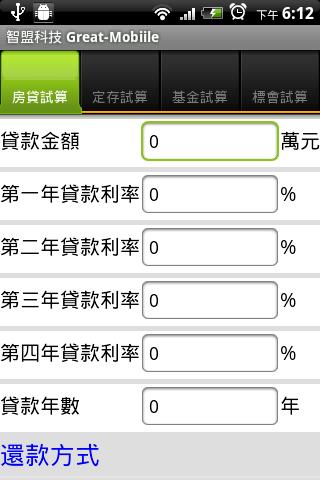 - 理財計算機可以作房貸、定存、基金、標會等試算功能