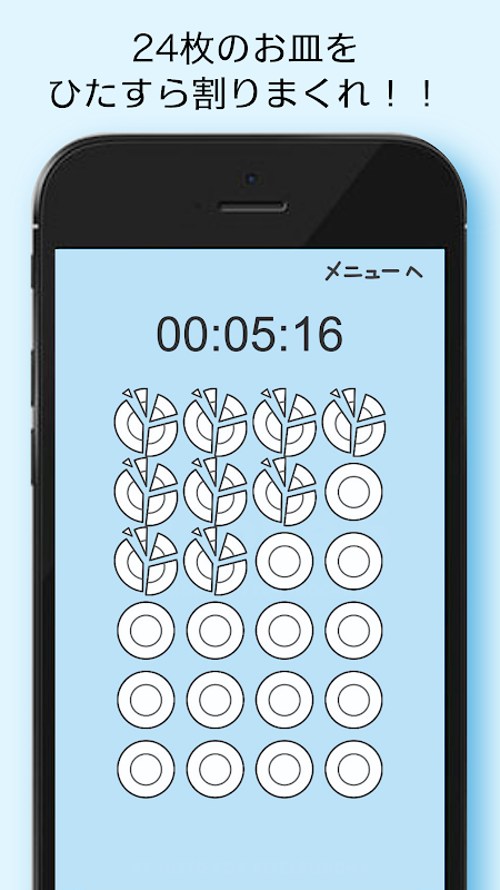 素早く全てのお皿を割り、全国ランキングに挑戦しましょう。