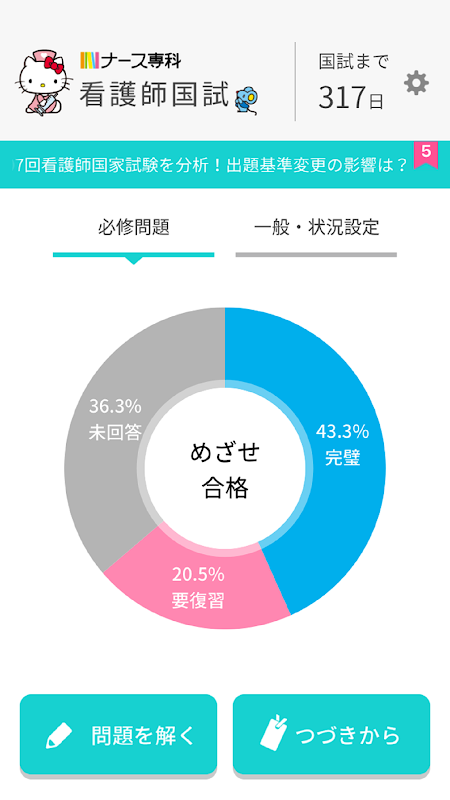 看護師国家試験の対策が楽しく続く学習アプリ。