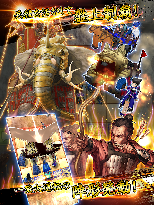 将棋のような戦略性を兼ね備えた戦略カードゲーム。将兵の持つ特技や大将が放つ陣形を駆使し盤上を制覇しよう!