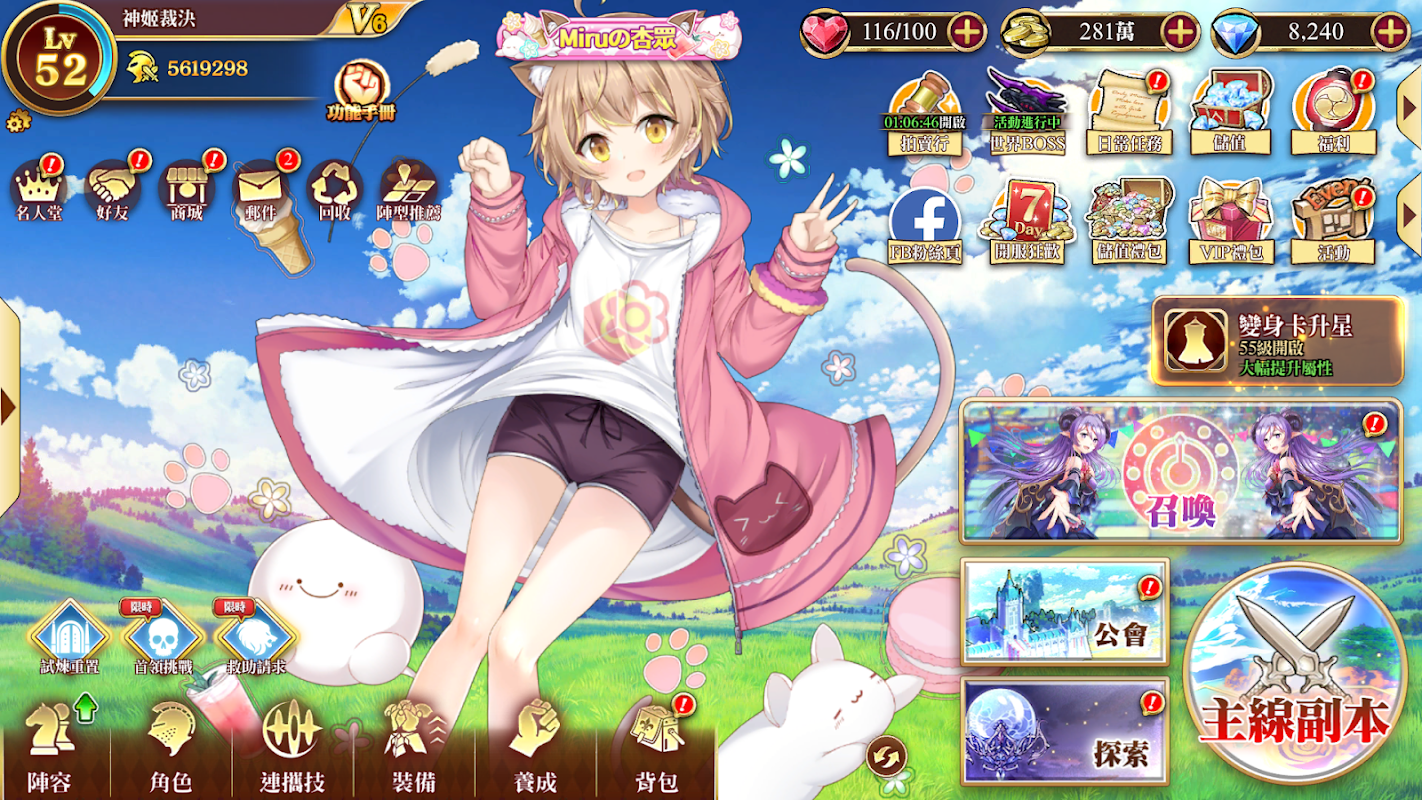 Tham gia cùng những người bạn mới mà bạn kết bạn trong guild, trò chuyện với họ hoặc thể hiện nữ thần của bạn với họ. Bạn có thể kiếm phần thưởng bằng cách làm việc tại Trường học mạo hiểm giả, Viện phép thuật hoặc có thể thách thức vua thế giới với đầy đủ máy chủ để cùng nhau giành lấy chiến thắng.