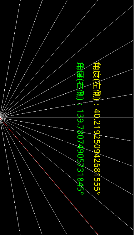 ・画面をタッチすると下端からその位置まで赤い線が引かれ、その間の角度が表示されます。