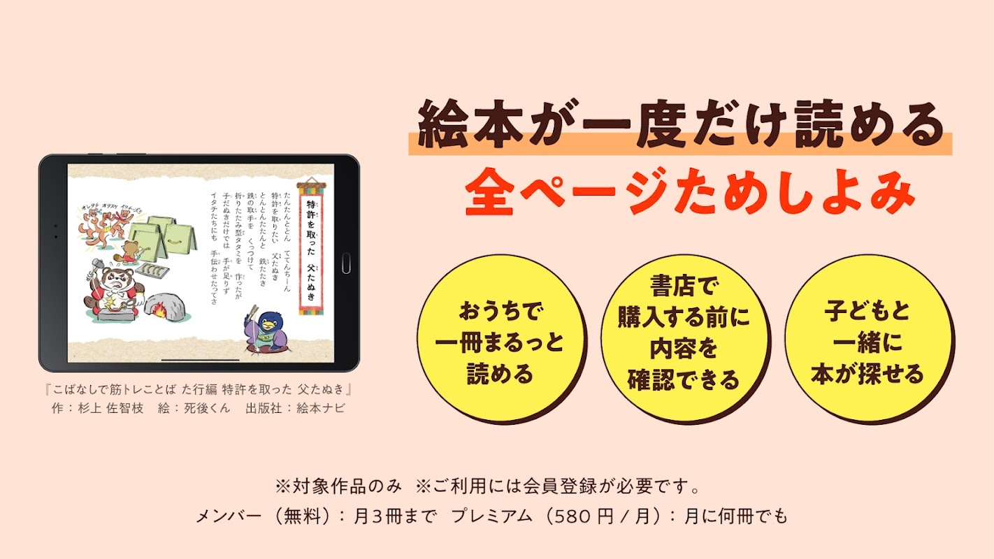 Bạn có thể đọc sách tranh trước khi mua với tính năng đọc thử! Ngoài ra còn có kế hoạch đọc to cho tất cả những gì bạn có thể đọc. Ứng dụng chính thức của "Ehon Navi" được 20 triệu người sử dụng mỗi năm