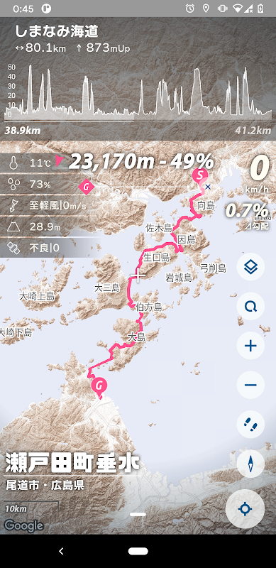 [Dành cho Yurupota] Đồng hồ tốc độ, tạo tuyến đường và các chức năng điều hướng đơn giản đều có sẵn. Bạn có thể hiểu được một cách trực quan sự địa hình của vùng đất bằng các viên gạch địa kỹ thuật raster.