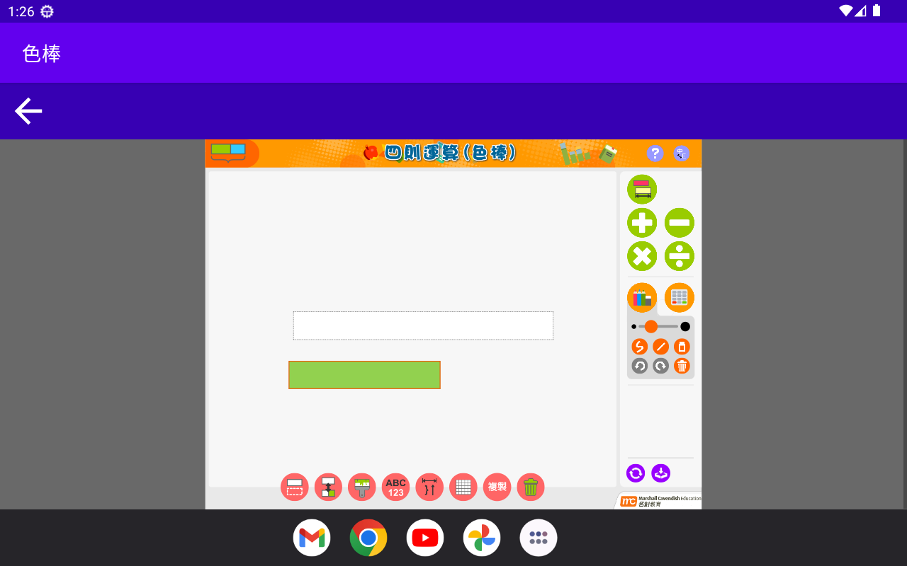 "Four Arithmetic Operations (Color Stick)" is an electronic problem-solving tool that integrates self-study and teaching. Students can use this app to preview and self-study before class, and they can also review and understand the meaning of addition, subtraction, multiplication and division word problems after class. Teachers can also use the color sticks in this app in class. Through different mathematical models, text is visualized to help students understand and master the problem-solving methods of applied problems.