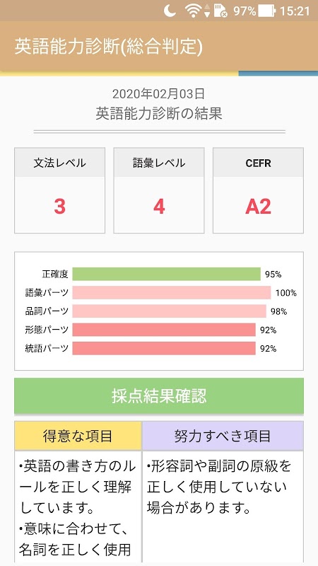 ・ Đánh giá chính xác và hiển thị cấp độ ngữ pháp, cấp độ từ vựng và cấp độ CEFR
