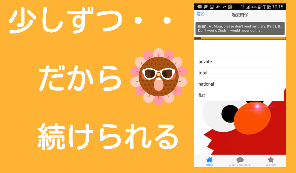 このアプリは英検準2級の合格をめざすための無料学習アプリです。練習問題は60問電車の中など1日10分程度でコツコツできます。