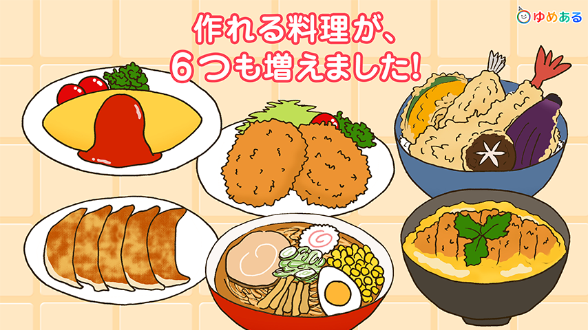 作る料理を選んだ後、食材をタップで切って作っていくアプリです。作ったあと、完成料理をタップすると「食べる」こともできるよ!親子で楽しく、料理を作ろう!