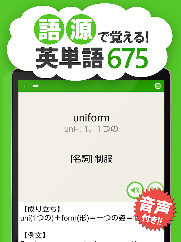 Thông tin APK 語源英単語 - 英語ネイティブの発音付き英単語暗記アプリ