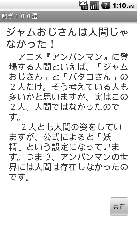以下はこのアプリにある雑学をまとめたもののリストです。