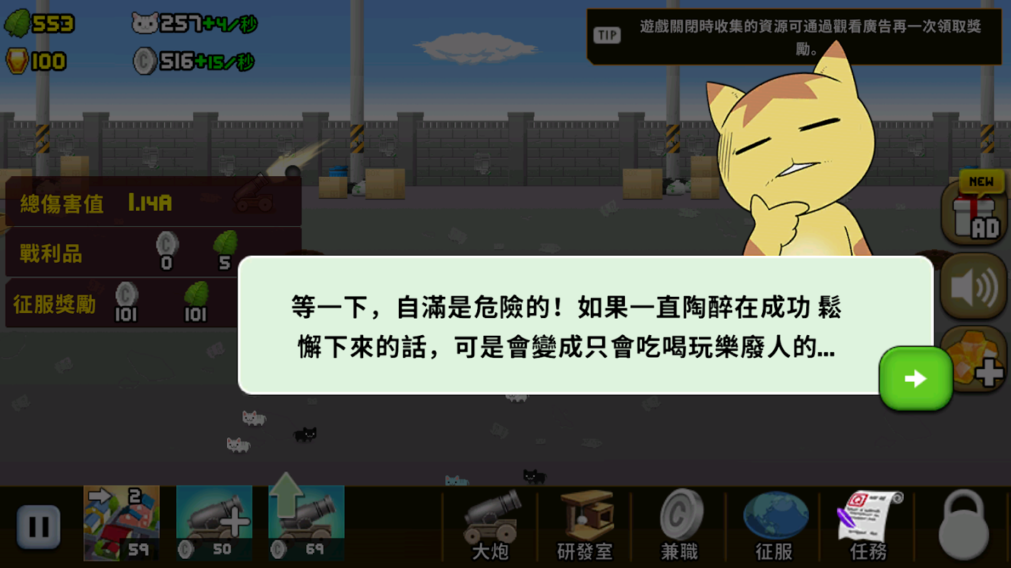 Ngay cả trong trạng thái đóng, nó sẽ tiếp tục thu thập tài nguyên catnip / cat / xu trong trò chơi xếp đặt.