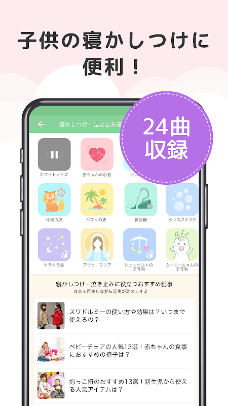 Bao gồm 24 loại âm thanh ngủ và khóc phong phú! Tìm âm thanh yêu thích của bé