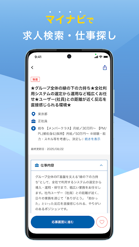 [Tìm kiếm việc làm Mynavi] Tìm kiếm hơn 300.000 việc làm và việc làm được cung cấp bởi Mynavi! Ứng dụng tuyển dụng và tìm việc lớn nhất Nhật Bản do Mynavi Co., Ltd. điều hành.