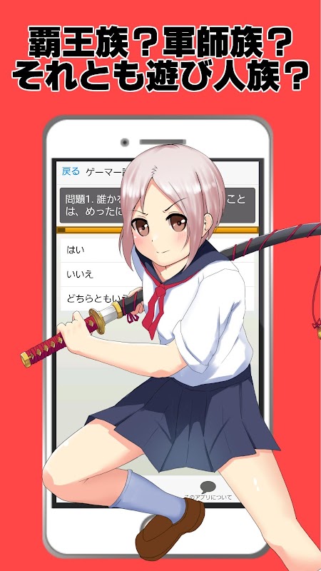 質問や心理テストからあなたのゲーマー種族を占います。その人の習性、性格、思考すべてをさらけ出します。無料アプリですので、暇つぶし程度にどうぞ。